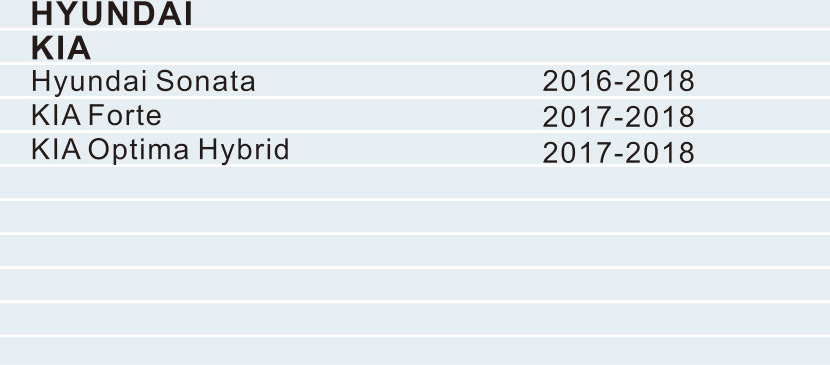 KIA Hyundai Sonata 2016-2018 KIA Forte 2017-2018 KIA Optima Hybrid 2017-2018